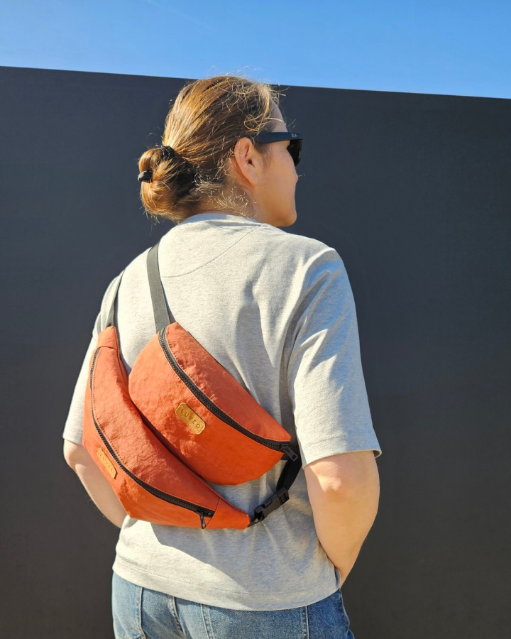 Nerka duża w kolorze ceglanym z regulowanym paskiem.